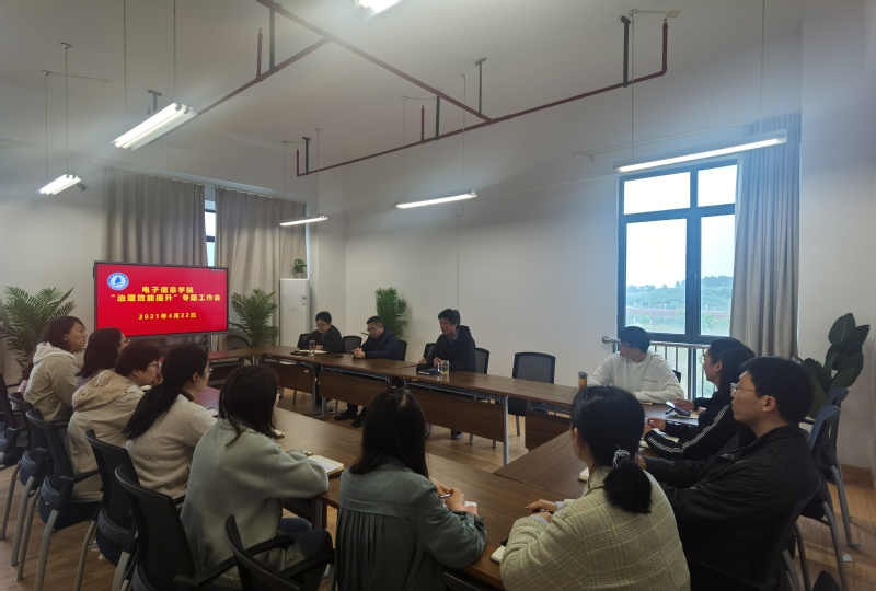 为进一步提升学院管理水平和效能,优化新校区学院管理模式,4月22日下午,电子信息学院在学院会议室召开治理效能提升专题工作会议,学院领导及党政办、教务办、学工办全体老师参加会议,会议由学院党委书记钱志发主持。