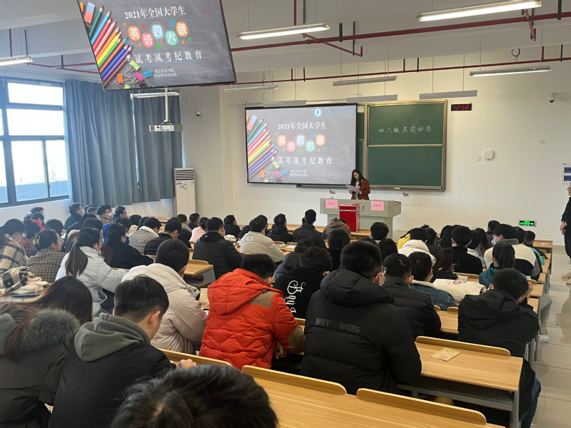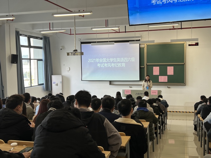 三位老师就全国大学生英语四六级考试的注意事项、考前可能遇到的一些问题进行阐述;向在场学生介绍了国家和学校对考试作弊行为的认定和处理办法,重点宣读了学生手册中考试违纪处分的处罚细则,帮助学生认清考试舞弊行为的危害性,引导学生增强诚信意识;列举了以往考生因考试作弊受到严重处分的例子,提醒学生引以为戒,希望参加考试的学生能够自觉诚信考试;最后祝愿参加此次考试的学生取得优异成绩。