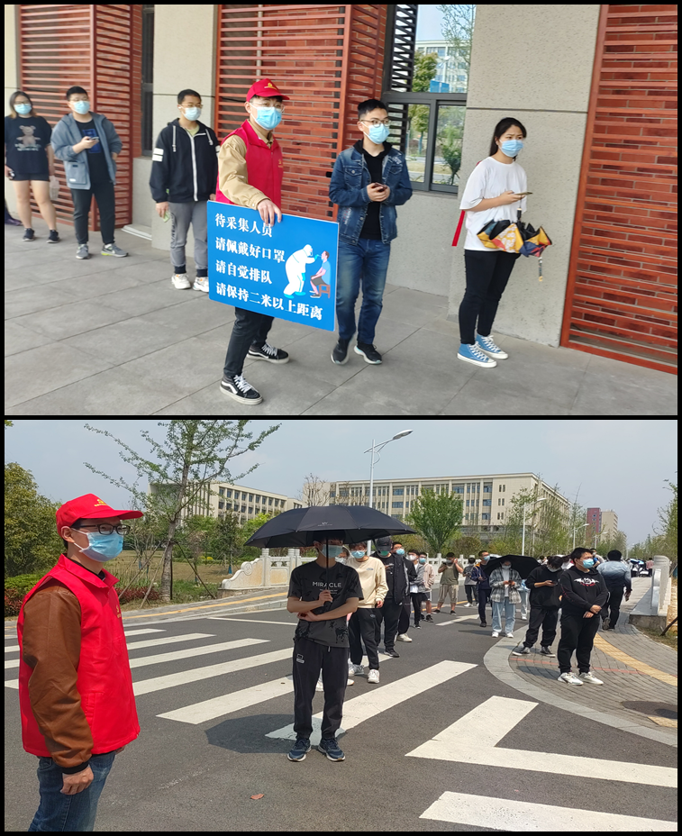 自4月13日开始,支部的“抗疫先锋”们在学院疫情防控工作领导小组的统一调配下,投入到紧张繁忙的日常疫情防控工作中去,风雨无阻提前到场,在做好个人防护的基础上,助力常态化核酸检测现场秩序维护。学术型研究生党支部目前已连续参与了四天的志愿服务活动,为牢固筑起防疫的青春长城冲锋在前。