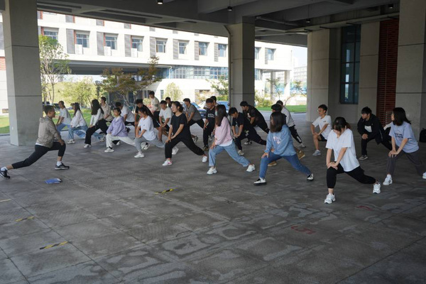 徐恒勇教授向同学们介绍了不同肌肉组织的锻炼方法,把生物理论巧妙与健身结合起来,针对男女生的体质区别制定了不同的健身计划,并强调了科学健身,掌握正确健身方式的重要性。在这个过程中,徐恒勇教授分享了自己在国外访学期间国外大学对健身的重视程度,并带领同学们进行了热身,讲述了人体不同系统和肌群的工作机制,展示了不同运动过程中拉伸的方法,逐渐激起了同学们健身的热情。