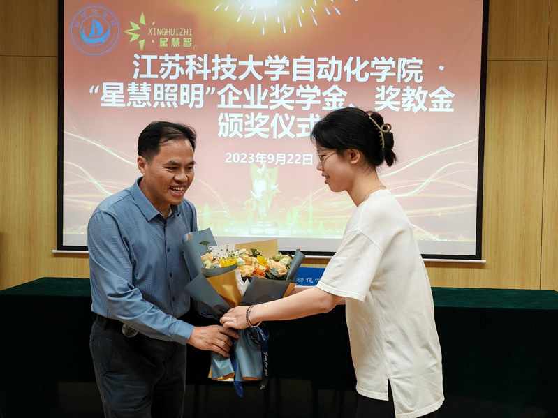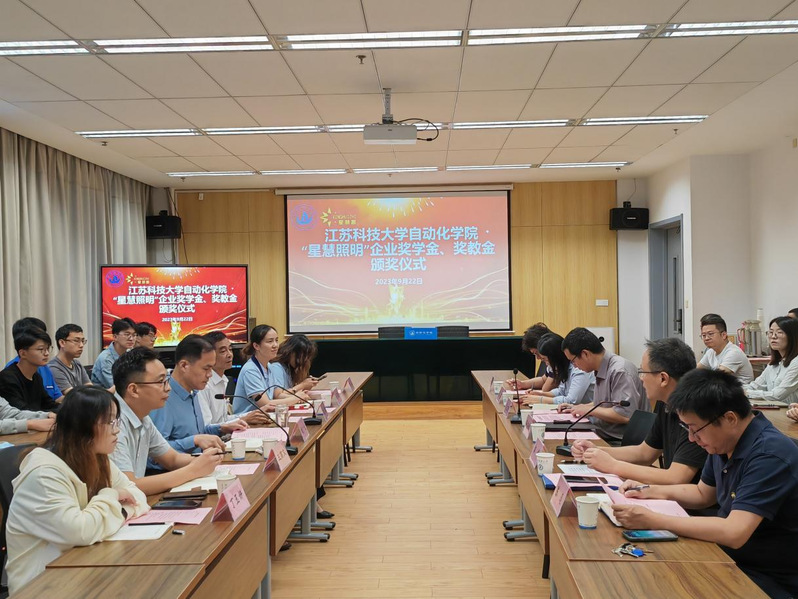 9月22日,自动化学院2023年度星慧照明奖学金、奖教金颁奖仪式在自动化学院楼学术报告厅举行。星慧照明工程集团有限公司董事长胡广太一行,自动化学院全体领导班子,获奖师生等50余人参加了此次颁奖仪式。学院党委副书记郭峰主持会议。