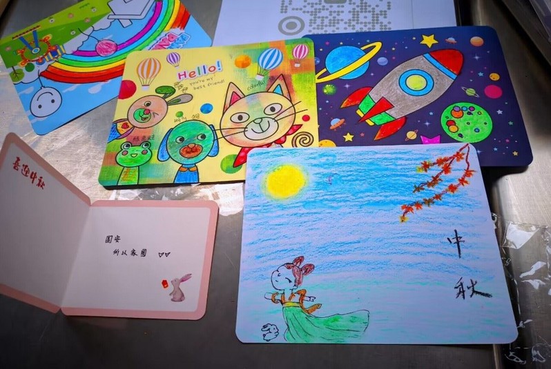 绘中秋,盼团圆。同学们通过在团扇上发挥想象,共绘中秋愿景。活动过程中,大家互相帮助、积极创新,创造出了寓意丰富的多彩场景,体现出了浓郁的团圆氛围。