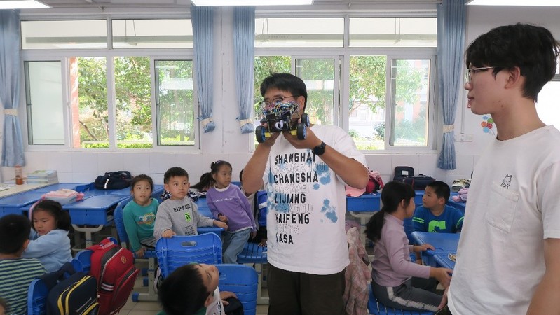 智能新时代,自信赢未来。活动伊始,大学生志愿者戴毅杰使用手机蓝牙控制智能车移动,小朋友们以饱满的热情围坐在志愿者身旁,被有声有色的讲解带进无边无际的科技世界里遨游,吸取科学知识,培养科学精神。