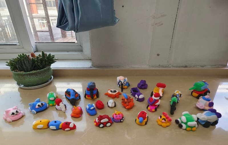 图五 润商小学一年级1班同学制作的粘土小车