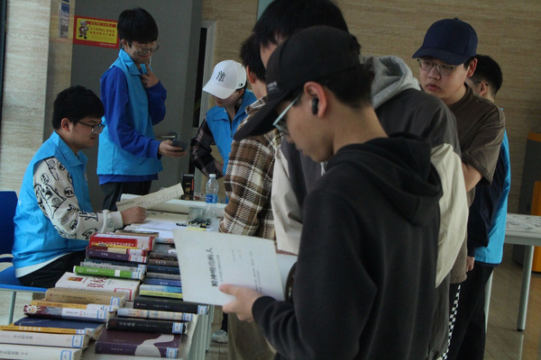 图1:图书漂流现场,参与同学前来交换图书、分享图书