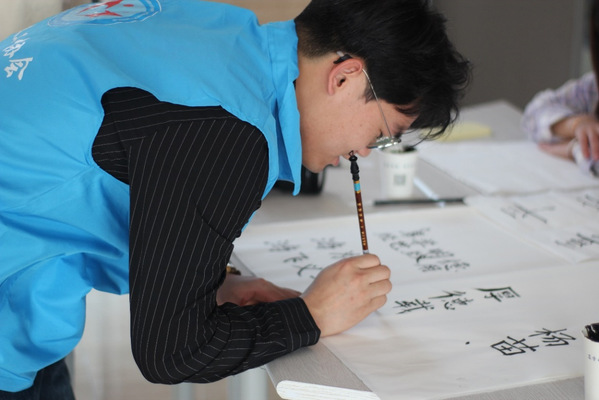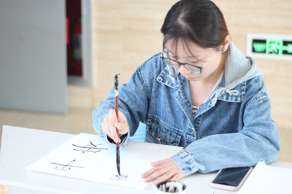 活动第二项“翰墨含香,纸落如云”,同学们用毛笔或软笔在现场书写作品,在感受中华优秀传统文化魅力的同时,平心静气,培养自身审美情趣和艺术修养。