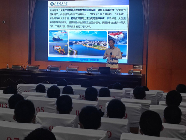 报告会上,俞孟蕻教授从疏浚的概念、挖泥船分类和主要功能及用途、新世纪以来我国疏浚行业的技术创新以及国家战略工程等几个方面,向同学们做了详细介绍,让在场的师生充分感受到中国力量、中国智慧、中国精神。主题报告后,俞教授和在场的同学们积极互动,围绕同学们提出的疏浚装备的未来发展方向、疏浚工程对专业知识的要求等问题一一作答。最后,顾庆华副校长对俞教授的精彩报告给予高度赞许,并鼓励同学们认真学习,待学成之日为国家发展、民族复兴作出积极贡献。