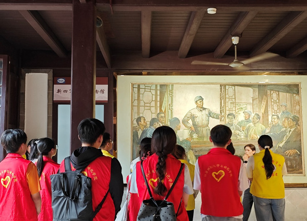 图示为实践团成员参观新四军四县抗敌总会纪念馆