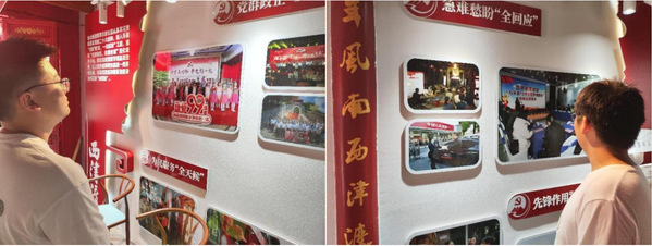 随后,一行人步入了温馨的西津渡红色驿站,这里不仅是旅途中的休憩之地,更是传递温暖与正能量的港湾。驿站内,一杯杯免费茶水暖人心扉,志愿者叔叔以满腔的热情和自豪,分享着红色驿站所提供的细致服务,从文明引导到紧急救援,每一处细节都彰显了其服务的高品质与深厚内涵。留言墙上密密麻麻的字迹,如同天南海北的游客共同编织的温暖记忆,实践团成员们也纷纷留下自己的足迹,希望这份红色精神能继续传递下去。