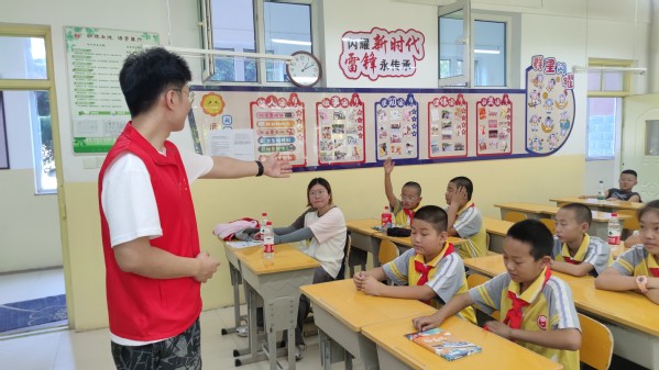 图为学生根据实践团成员的讲解,提出自己的问题。张京 供图