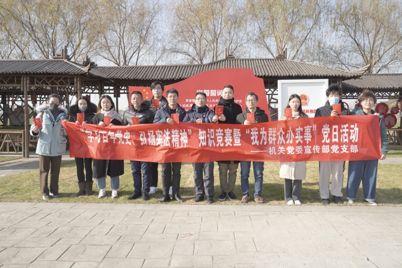 为进一步深入开展党史学习教育,引导党员深入学习贯彻领会党的十九届六中全会精神,弘扬宪法精神,进一步增强党支部凝聚力和战斗力,机关党委宣传部党支部开展“学习百年党史,弘扬宪法精神”知识竞赛暨“我为群众办实事”党日活动。12月15日支部组织参与开展2021年度江苏省妇女儿童公益服务项目“木兰花”儿童心理健康援助“大手牵小手,暖冬行动 ,实现微心愿”活动。12月17日,支部组织成员赴世业洲,组织参观习近平总书记考察地四季春农场、镇江市青少年综合实践基地宪法园,并于实践基地开展党史知识竞赛和素质拓展活动。